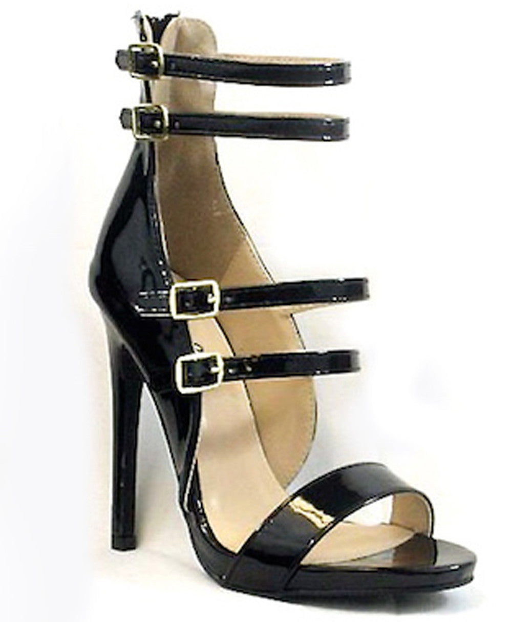 This strappy high heel has 4 sets of manual straps in addition to a solid band at your toes. This 4-inch black heel creates a steep style.SHIPPING POLICY