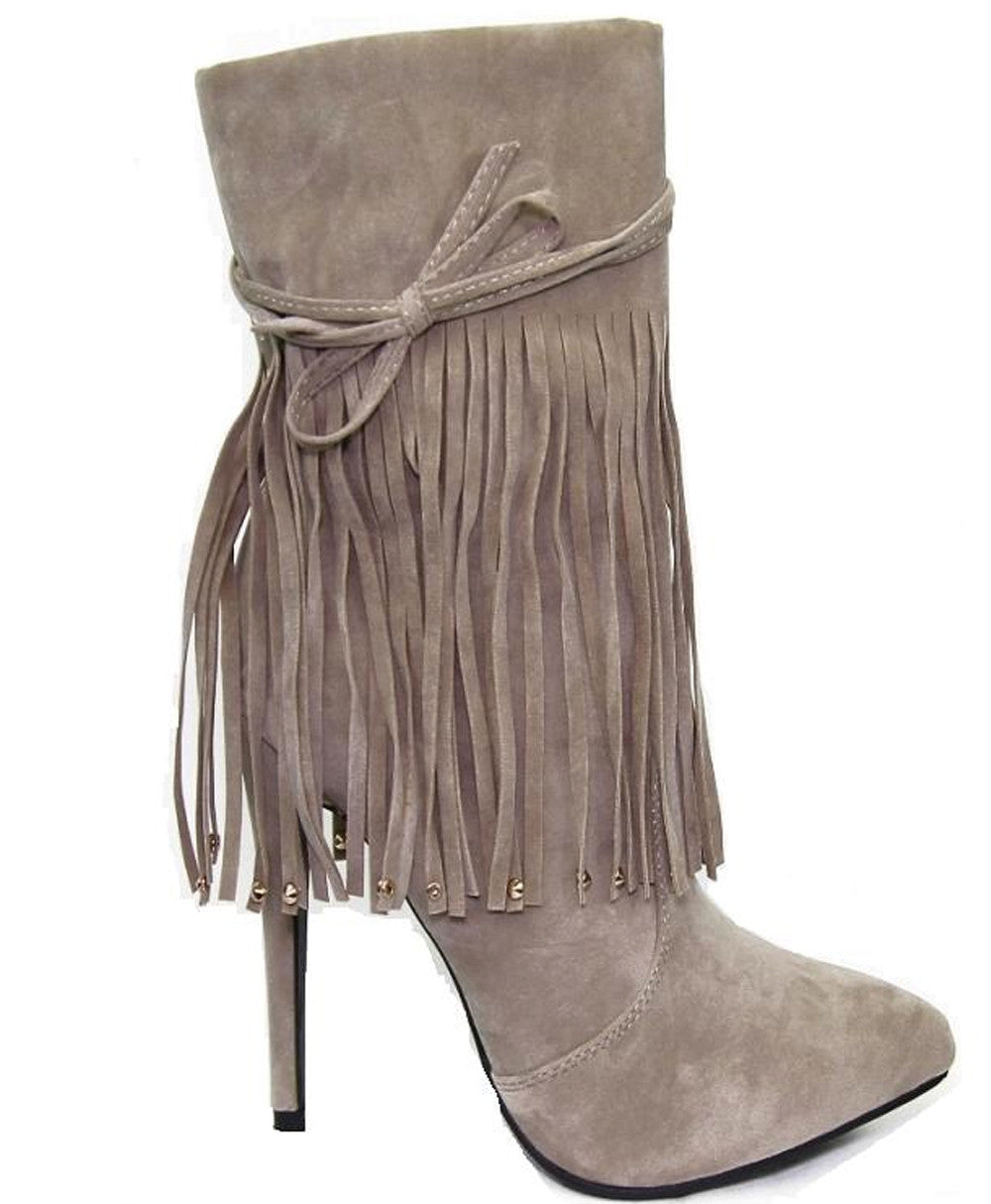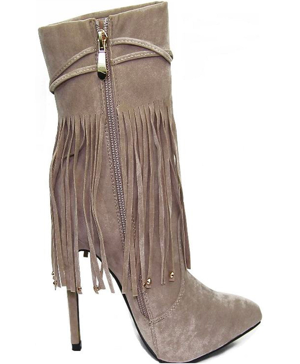 This Taupe Fringe Boot brings life to any Brat’s party! Made in luxurious faux suede, Peyton combines bratty fashion with bratty style. Rounded toe upper and stiletto heel. Side Zipper for easy slip-on comfort.SHIPPING POLICY